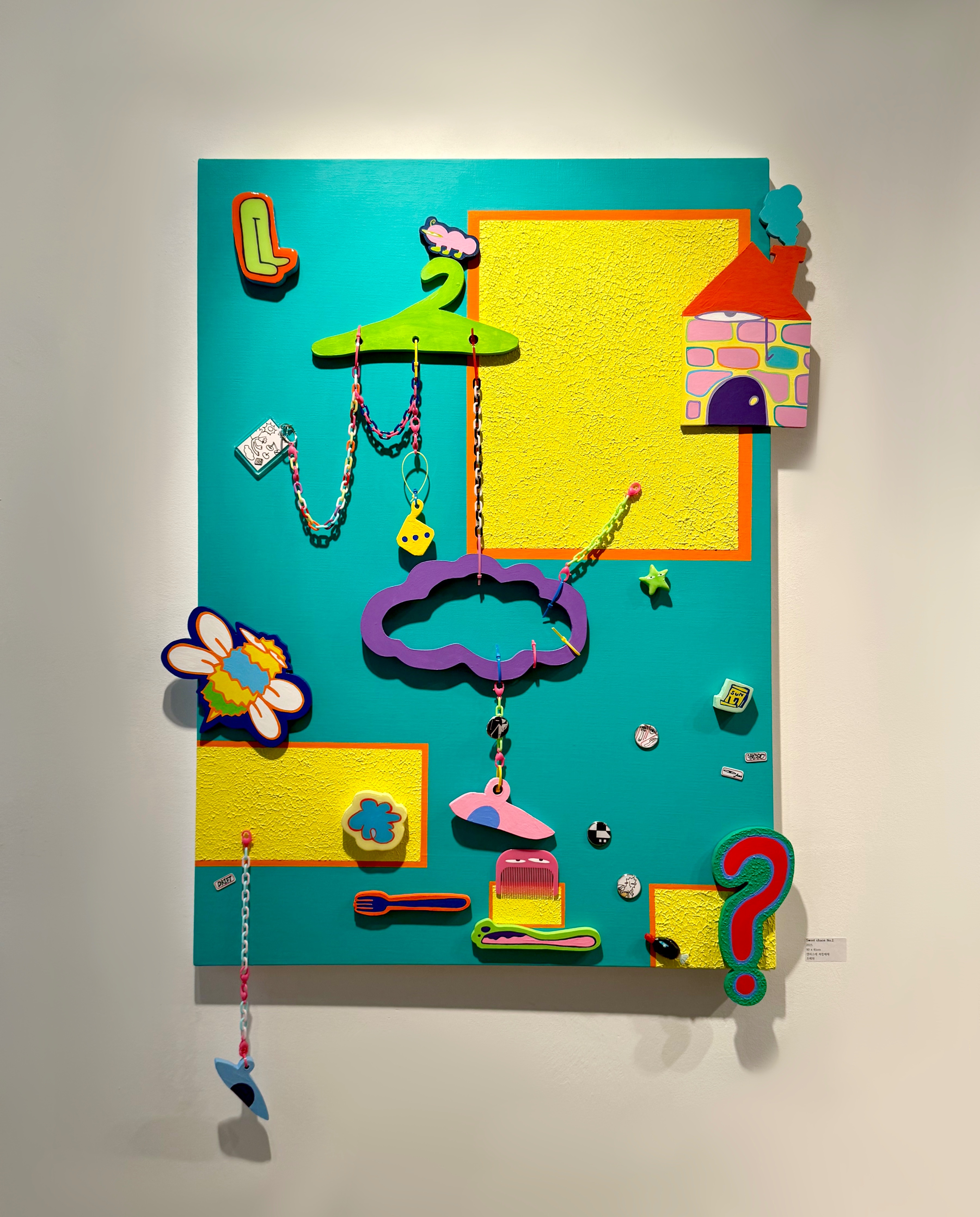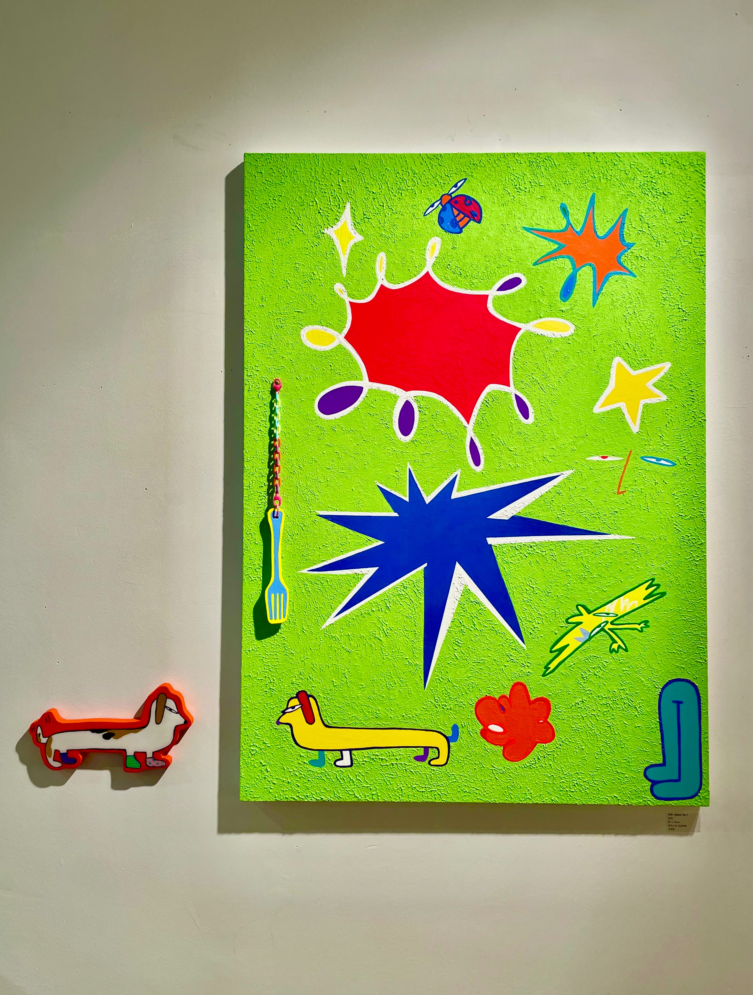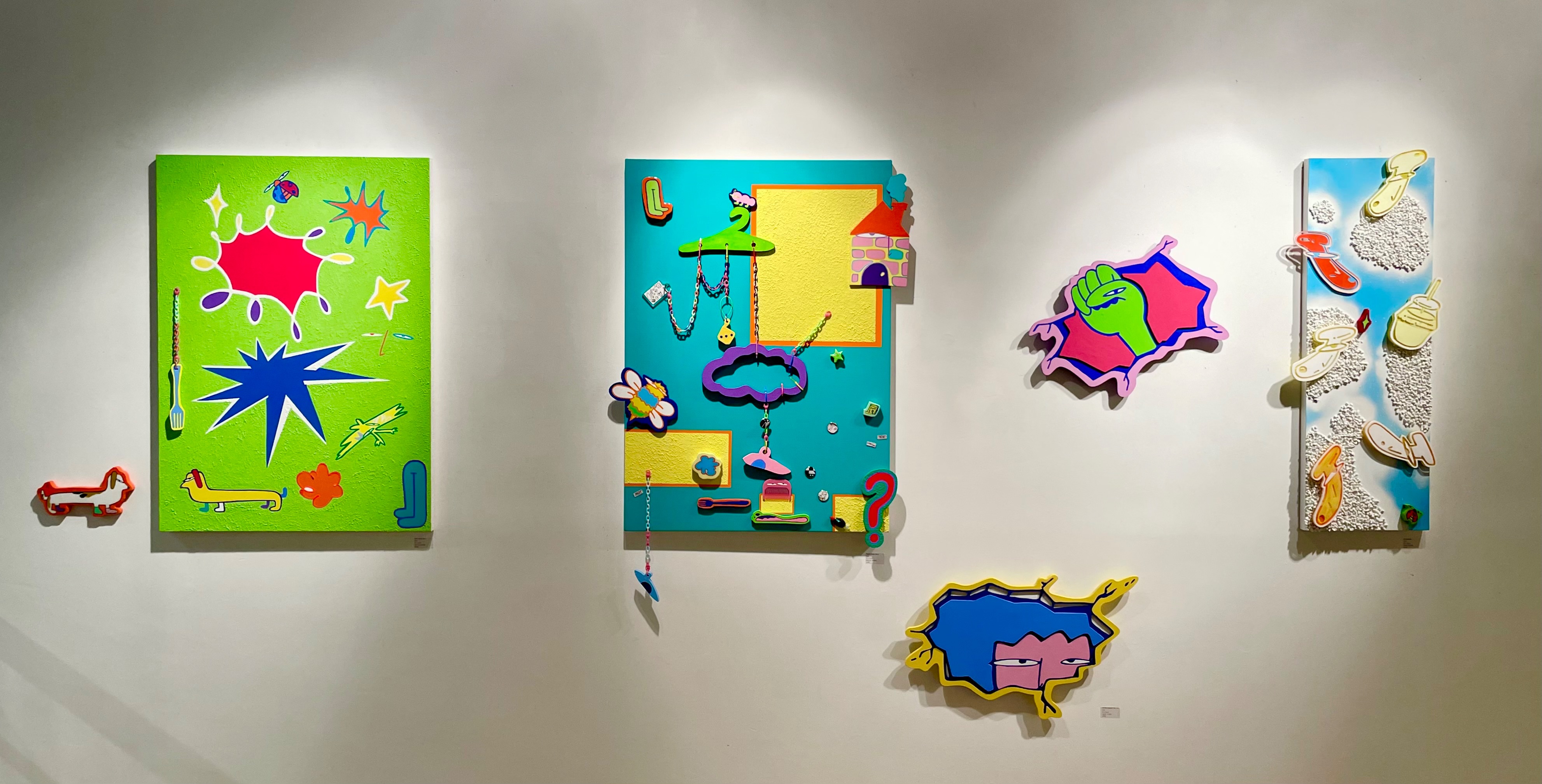 작가는 팝아트적인 감각을 기반으로 하되, 예측 불가능한 조합과 유동적인 흐름을 실험하는 것이 특징이다. 관객이 하나의 정해진 메시지를 받기보다, 시각적으로 떠돌며 자기만의 상상에 빠지는 시간이 되길 기대한다.
