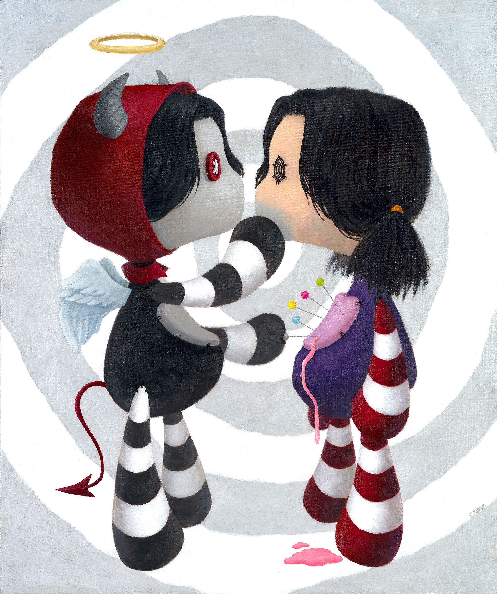 이기적인 목적으로 핀을 꽂는 자가 있다면, 그 핀에 찔리는 고통을 감내하고 끝내 버려지는 부두인형도 있을 것이다. 어쩌면 이 두 모습은 현실의 인간상을 투영하며, 사회와 사람들 사이에서 받게 되는 상처와 아픔의 형태일 수도 있겠다는 생각이 들었다. 이런 부두인형과 무기력한 존재인 나에 대한 연민은 'VOO'라는 캐릭터로 태어났다.